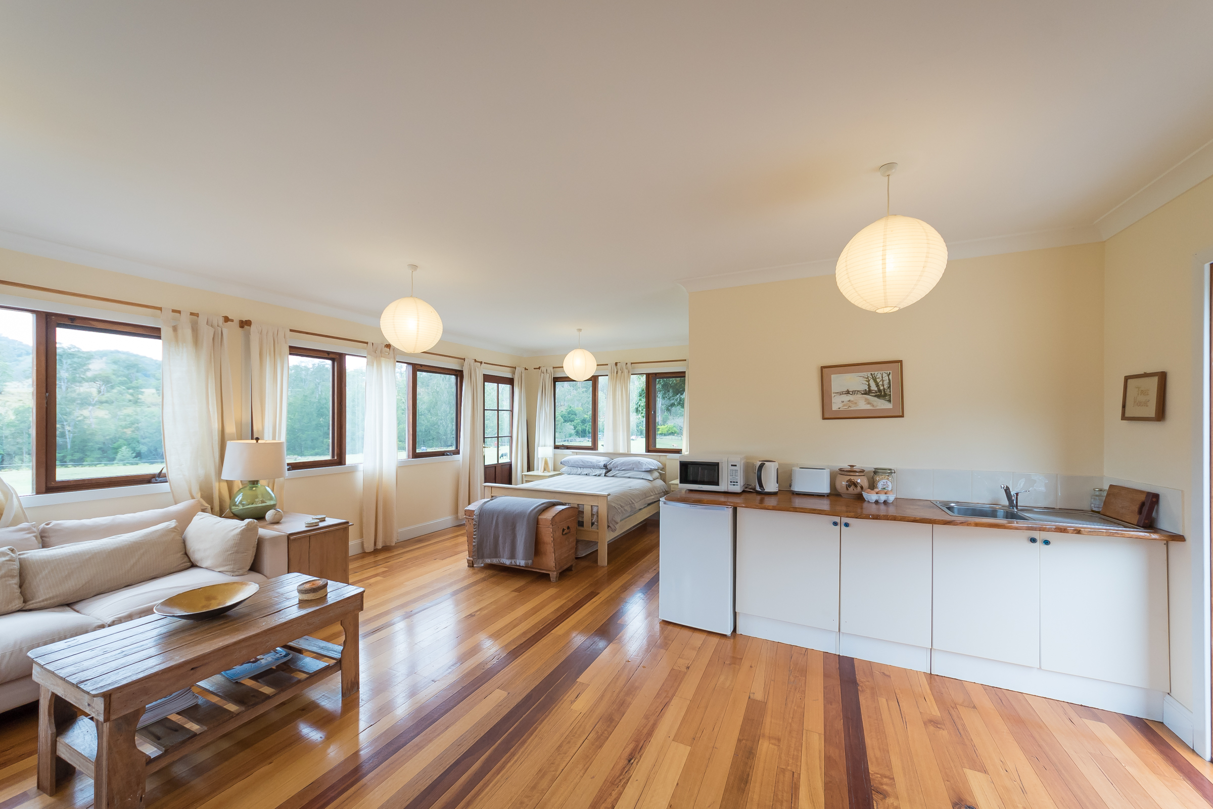 For those seeking a rural getaway with a little more luxury, we have a cedar clad Queenslander style apartment overlooking the home farm river flat. Immaculate and fully equipped, ‘The Tree House’ is 5 Star Luxury with 200 acres of peace and serenity surrounding it. The Tree House can accommodate two adults for the ultimate intimate getaway, or parents with young children looking for a relaxed farm and nature experience.